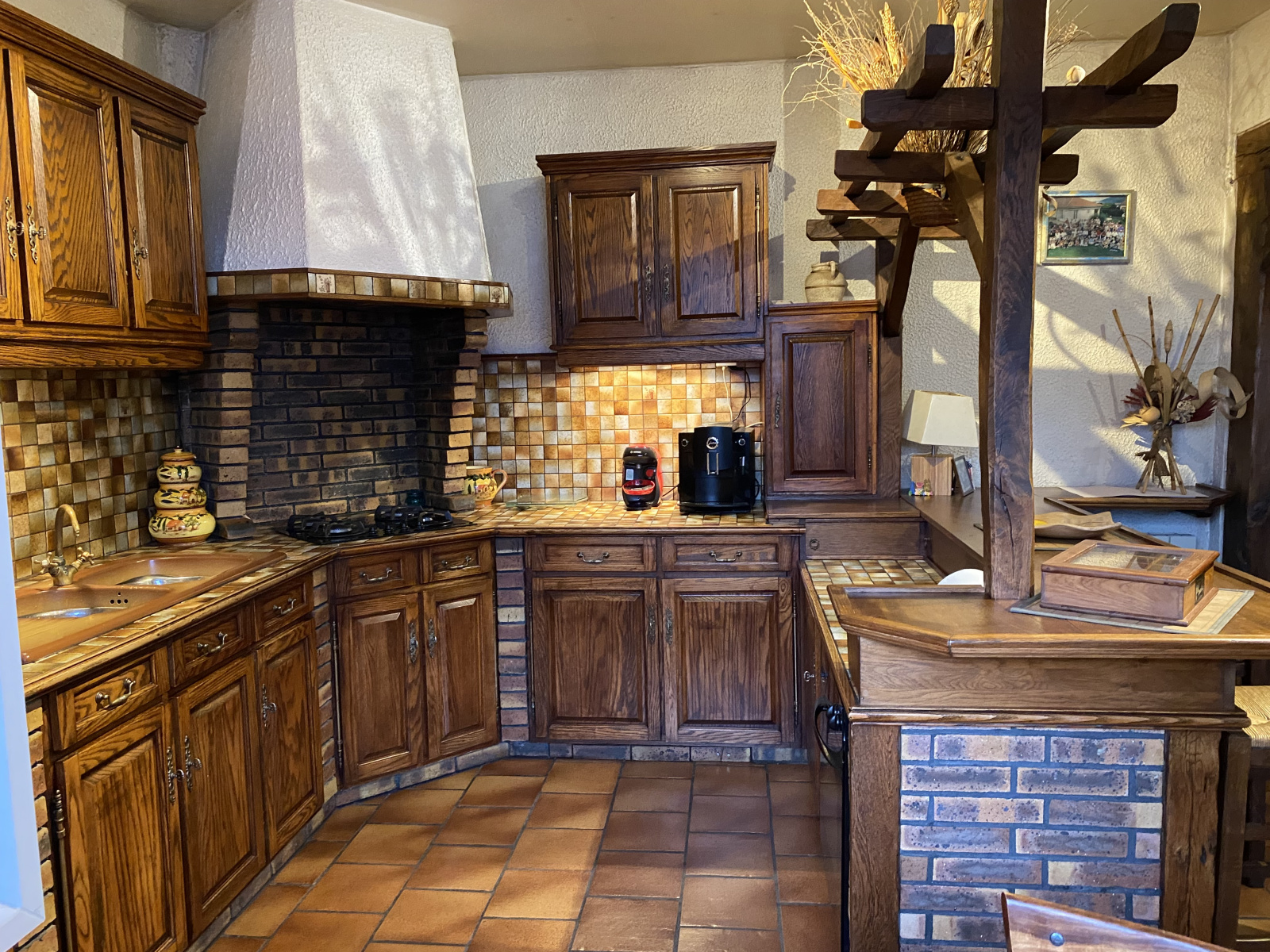 à l’extérieur on trouve une chambre et son wc et un cabanon type chalet puis toute une esplanade pour profiter du jardin.