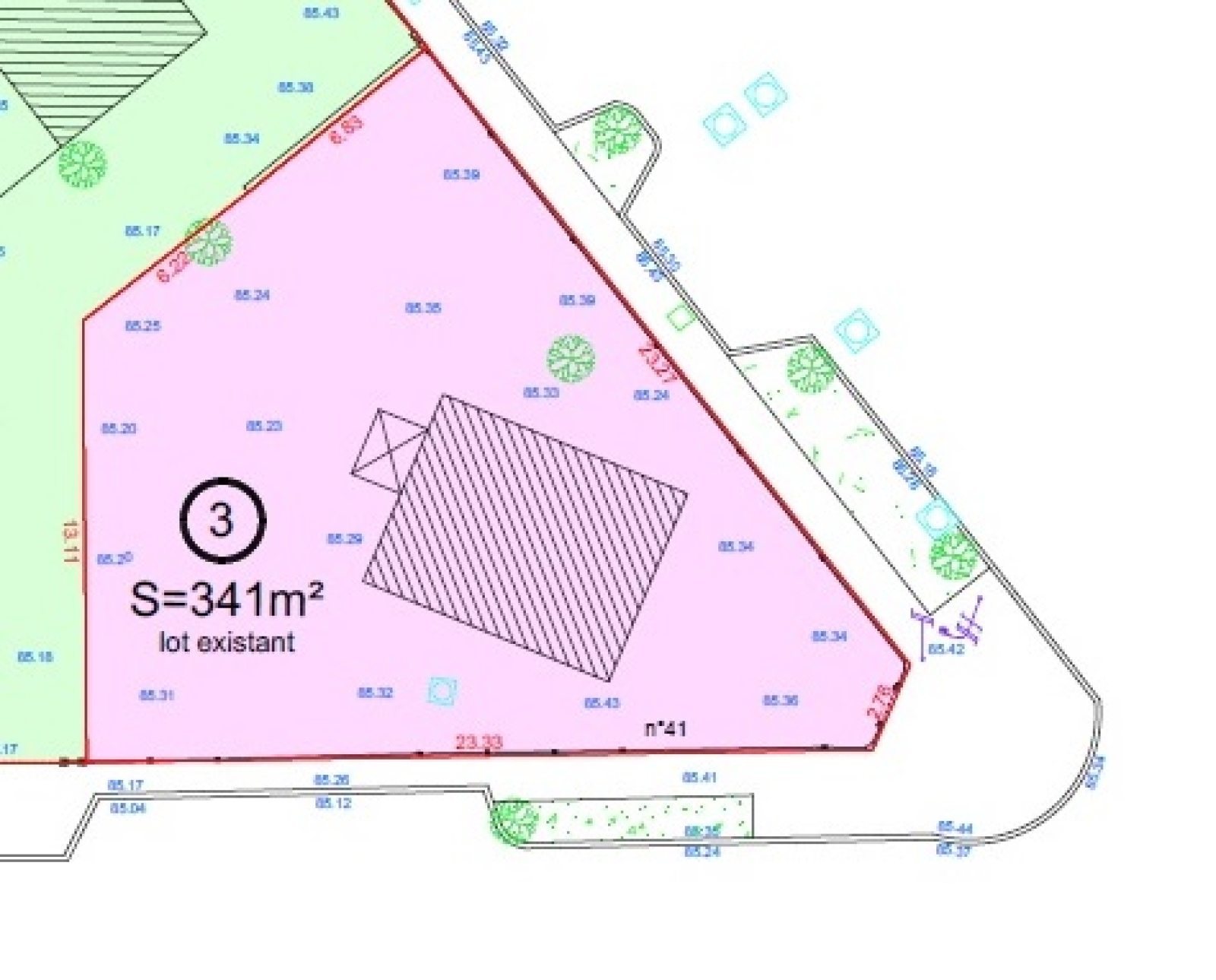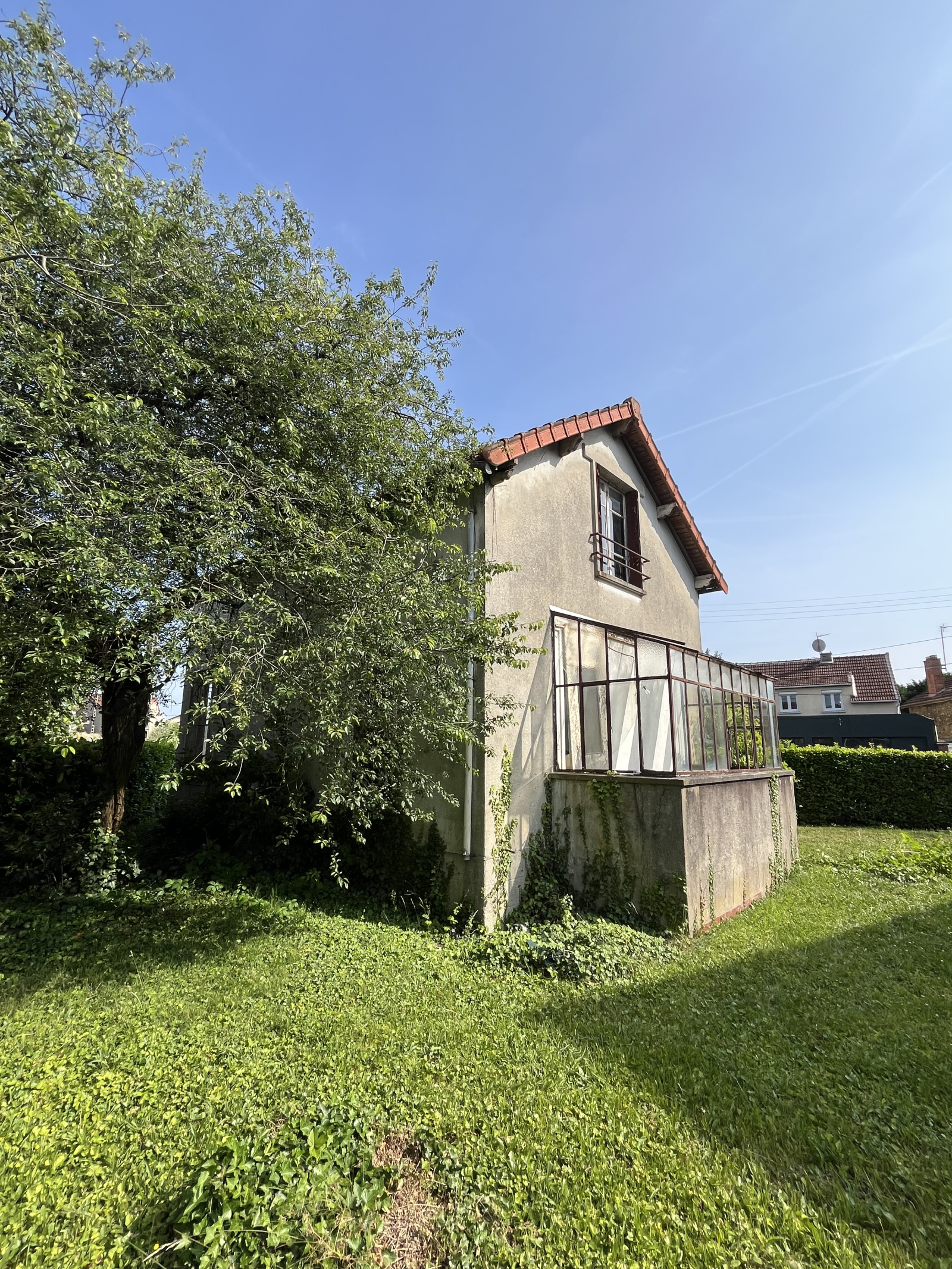 Maison d’environ 42 m² sur 2 niveaux, à l’angle de deux rues, sur un terrain de 341 m².