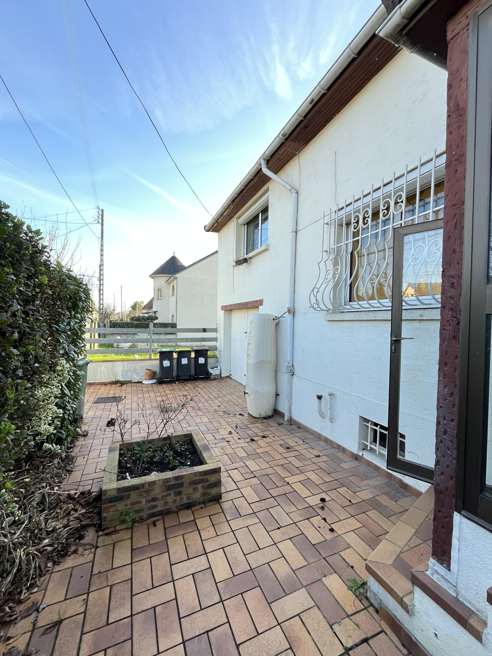 À l'extérieur de la maison un jardin tout autour et une terrasse à l'arrière de la maison, celle-ci est en limite de propriété d'un côté.