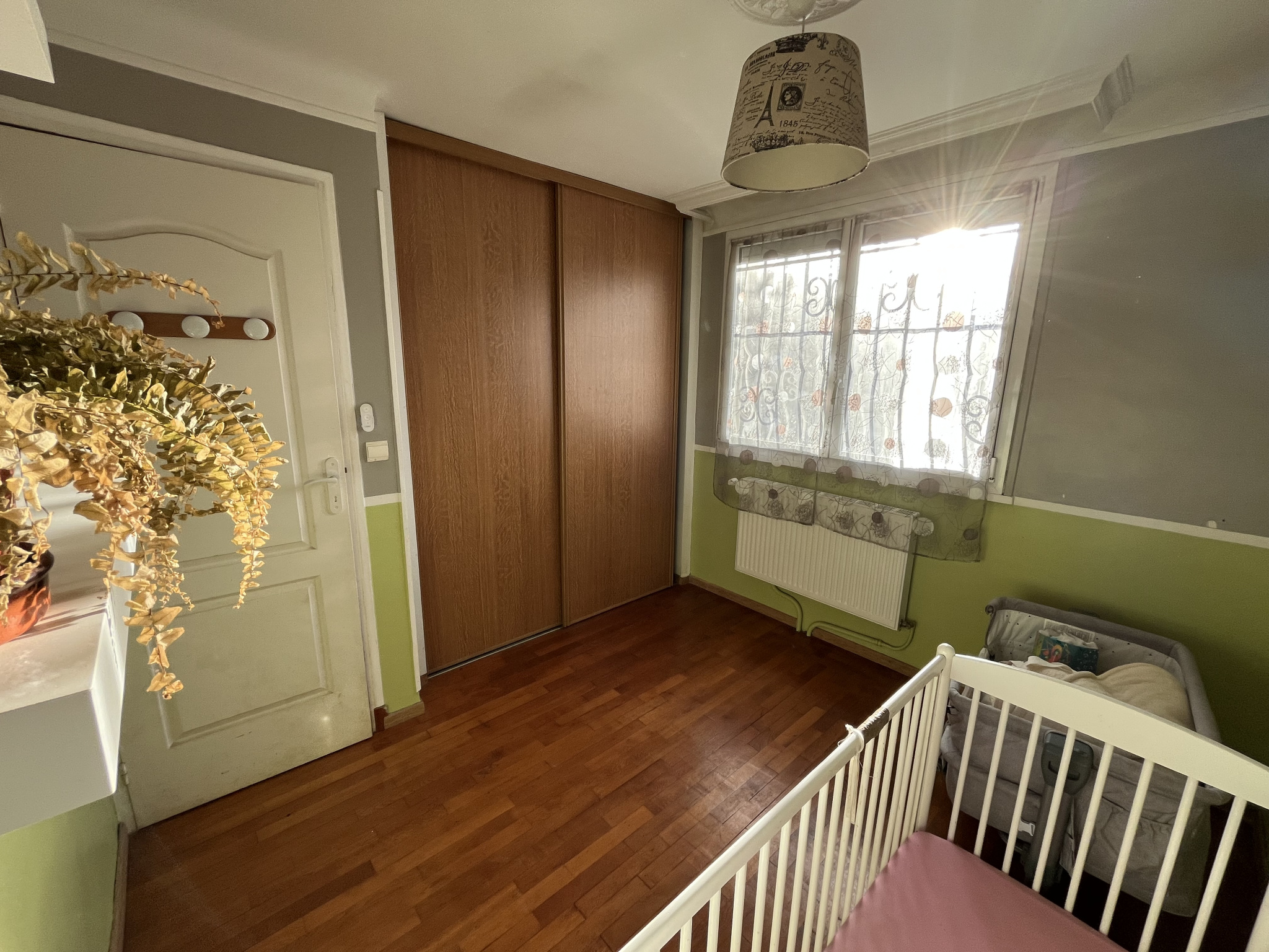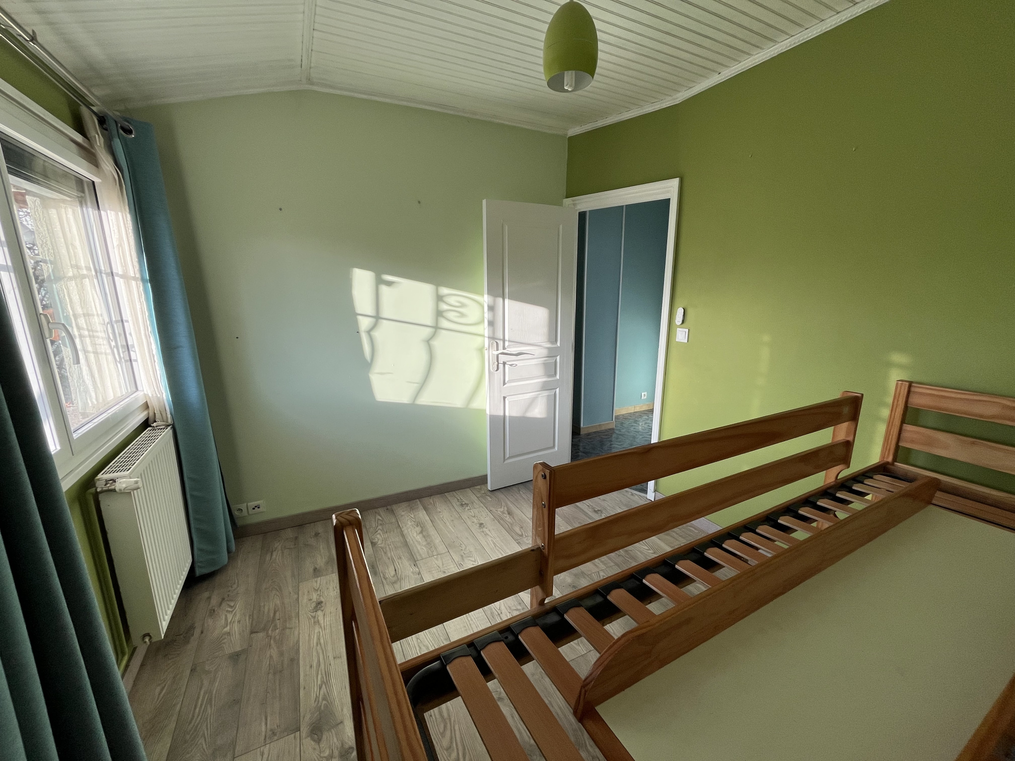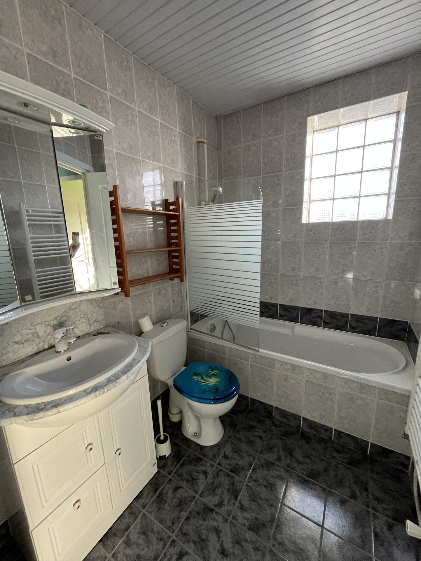 à l'étage en demi pallier au dessus du garage deux petites chambres et une salle de bains avec wc,