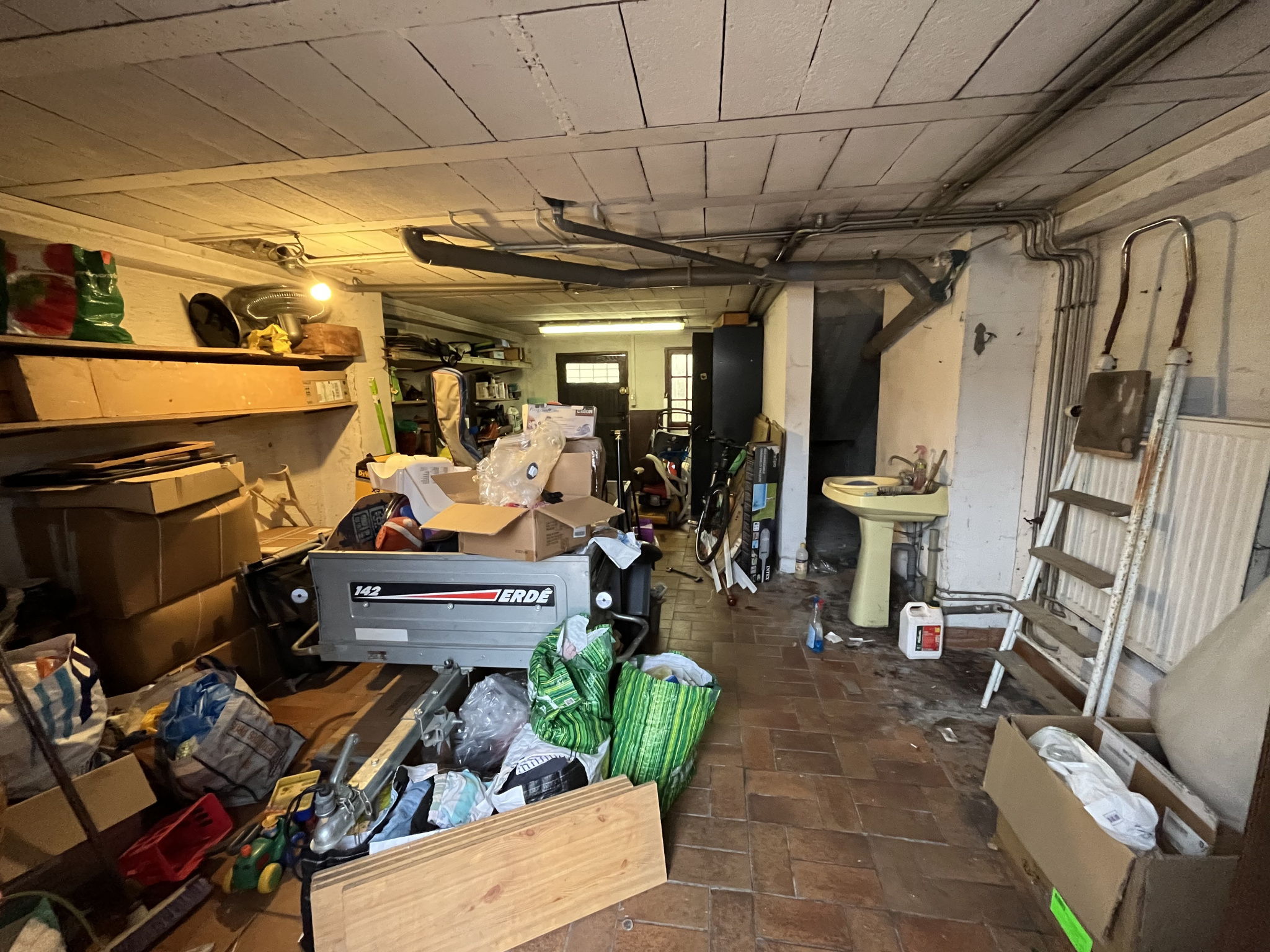 un sous sol total semi enterré avec deux pièces de stockage et une chaufferie.