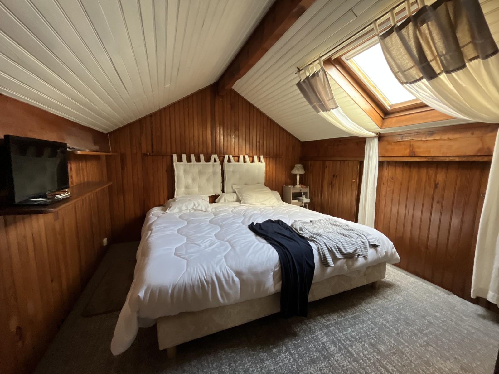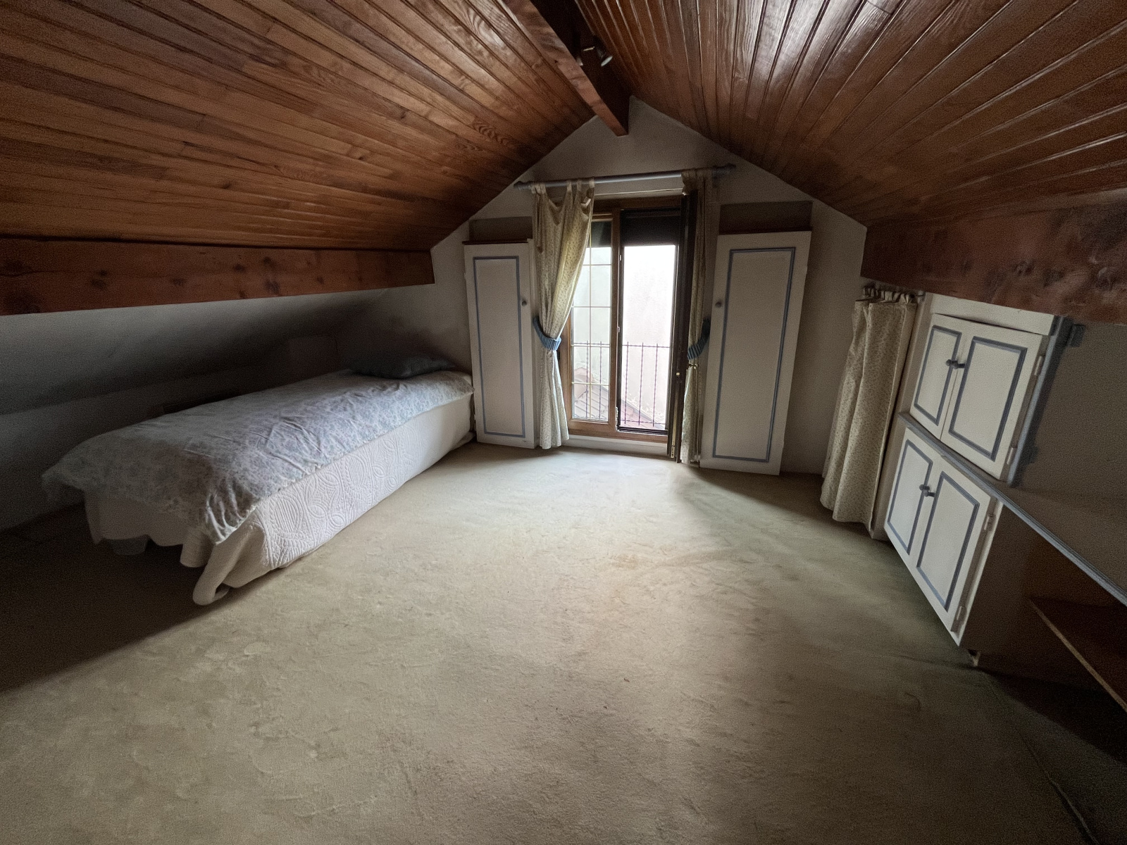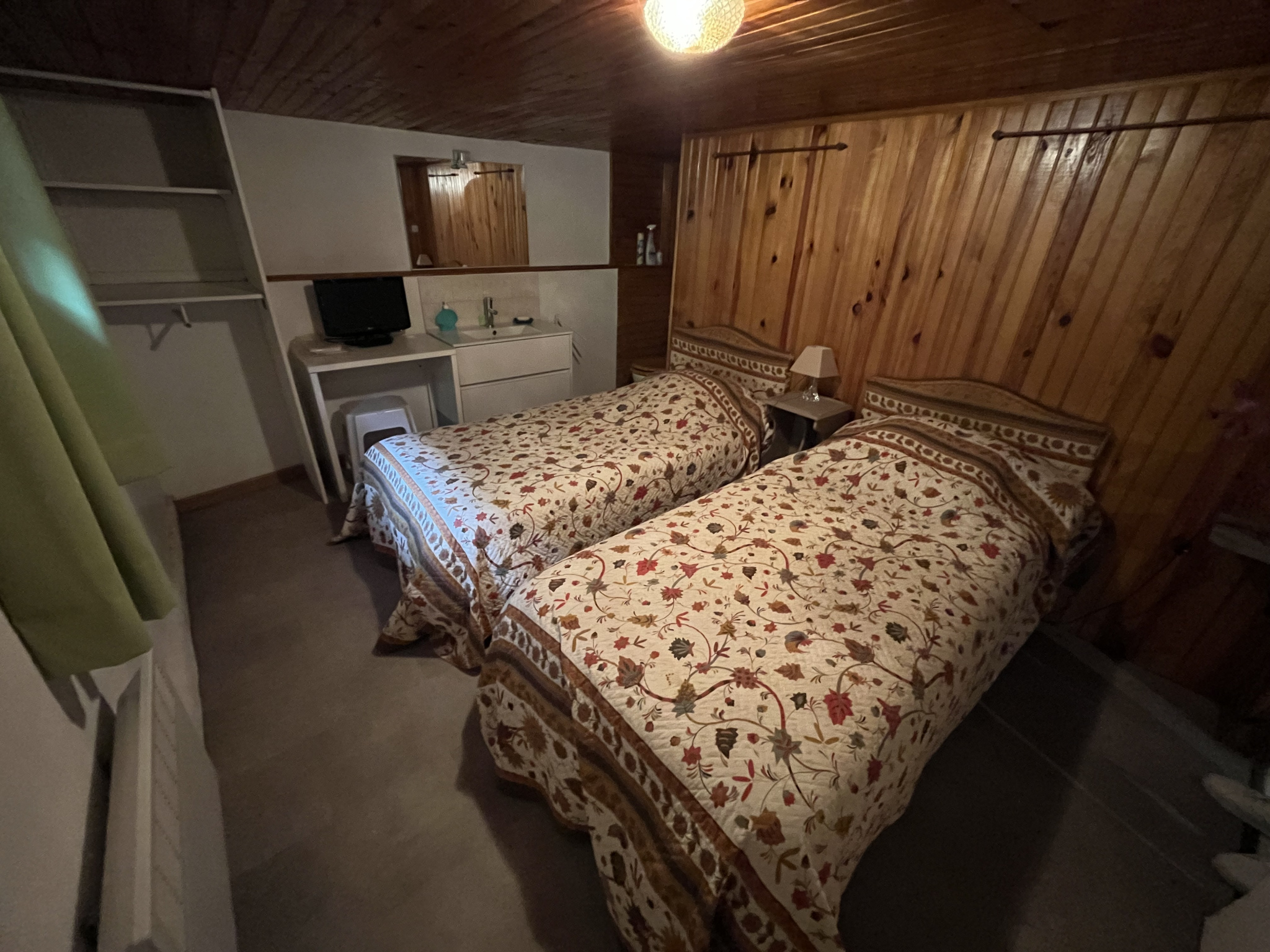 à l'étage deux chambres dont une avec coin wc et lavabo, dans les sous pentes des chambres des placards de rangements,