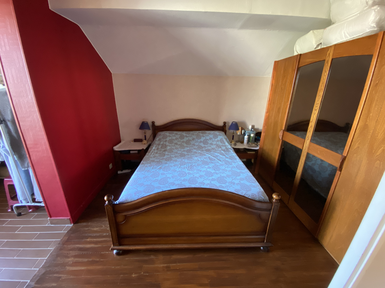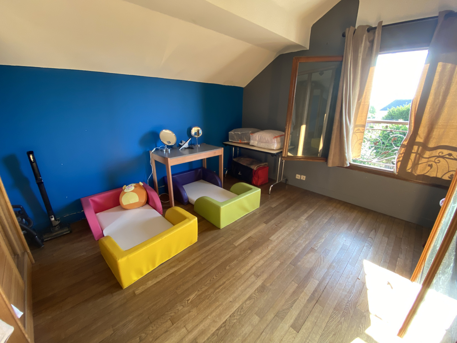 à l'étage trois chambres, une salle de bains avec wc et au dessus le grenier sous les combles,