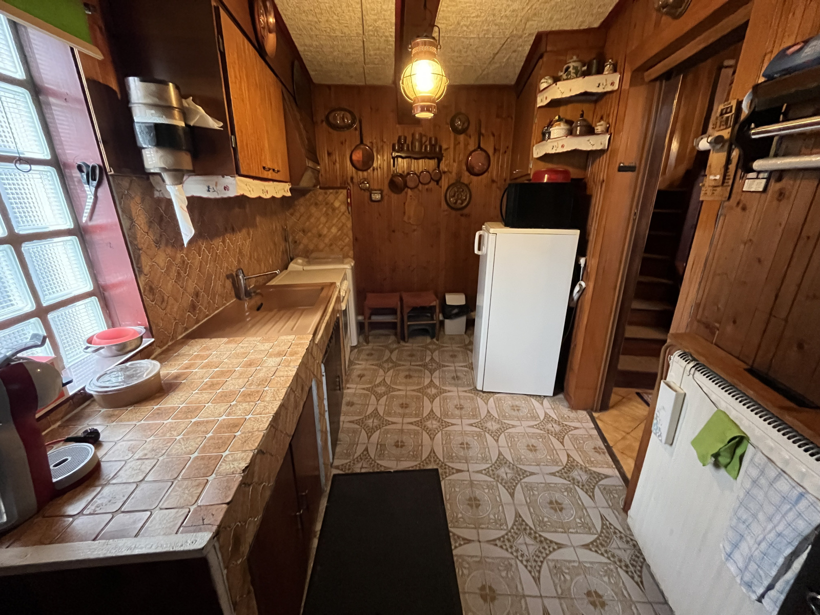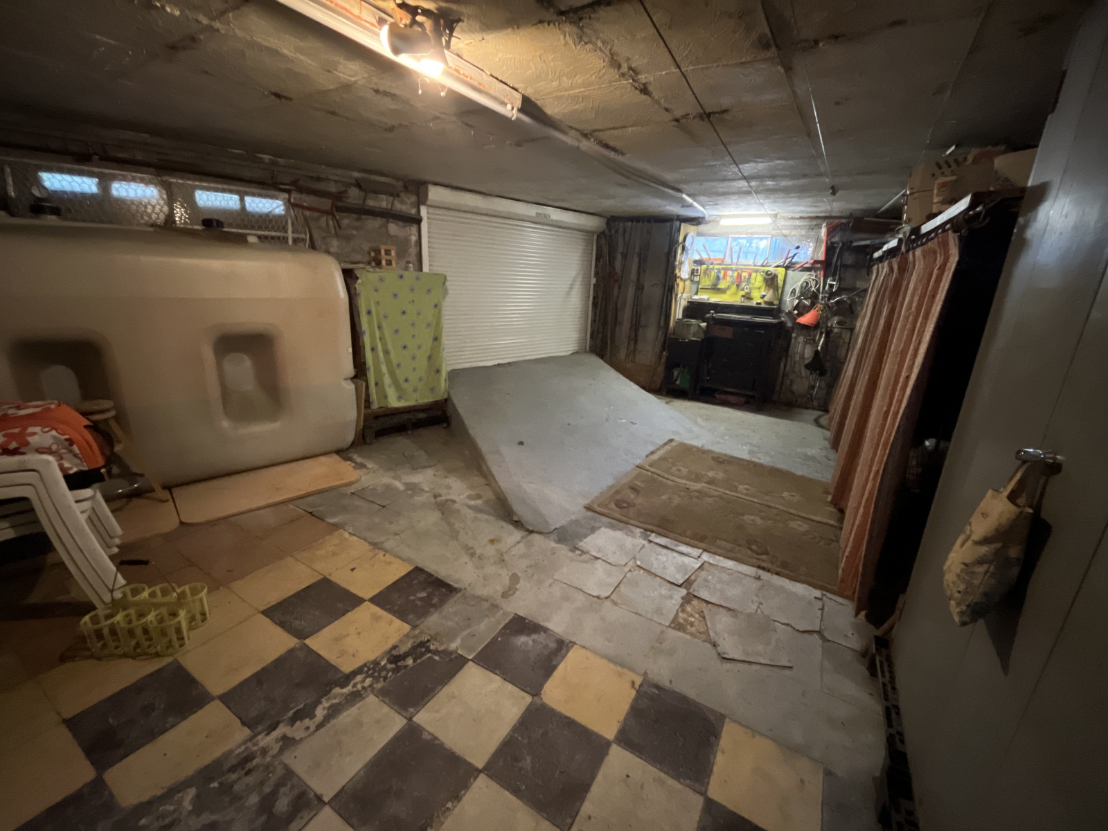 Au sous sol partiel un garage pour une petite voiture du fait de la pente de la descente, une chaufferie fuel et une cave à vin avec son sol en terre battue.