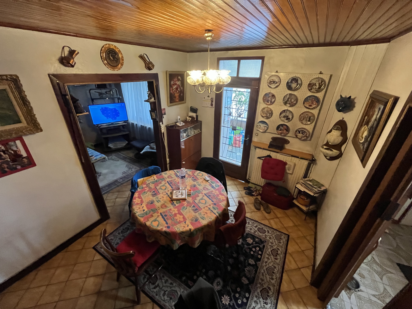 Son entrée au rez de chaussée se fait dans une véranda qui permet d'accèder à la salle à manger puis nous trouvons d'un côté un salon et de l'autre une cuisine à aménager, un toilette et une douche complète le rez de chaussée,